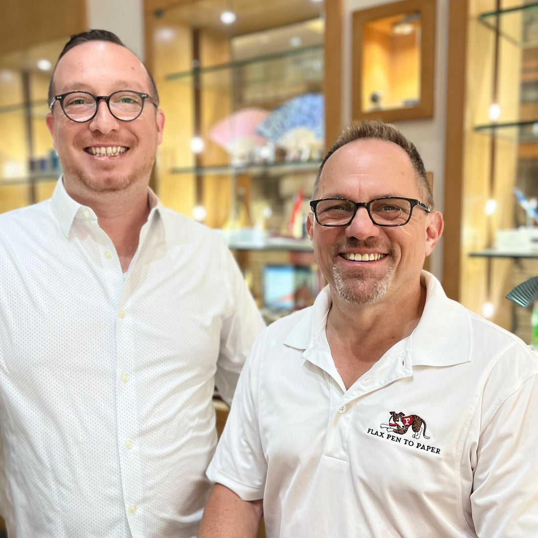 Keeping with the family tradition of a Westwood village location, Joan and Phil created Flax Pen to Paper on Gayley Avenue. The store is a glass and wood architectural masterpiece where light floods in and walls of color tantalize your senses. The pleasurable surroundings lead up to what rests within the elegant cases: some of the most exquisite pens in the world, with models for everyone from serious collectors to students. In 2020, Phil and Joan entrusted the store to their friend, Jeremy Saumure (near to his 5th year “Flaxiversary”), who works with Jeremy Schuster with manager Gabriela Acevides-Mendez and staff to serve you and source unique items to keep you visiting and patronizing Flax Pen To Paper. You might even see Joan or Phil some days.