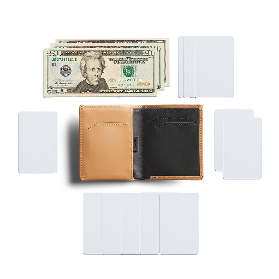A traditional design with surprising storage, the Note Sleeve holds cards, bills and coins in a trim, professional billfold.