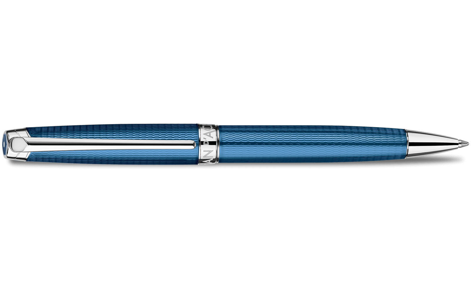 Bathed in light and ruffled by the wind, waves come to life with the new Léman™ Grand Bleu. The delicately engraved background evokes the regular ripples of waves on the water's surface. A layer of translucent lacquer, reminiscent of the intense blue of the ocean depths, reveals these undulating reflections on the refined body of Léman™ Grand Bleu writing instruments.