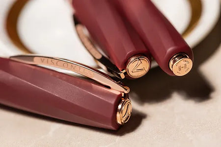 The Divina Matte Bordeaux collection is designed following the rules of the Golden-Ratio where the cap is 0.618 of the entire length of the pen itself. The pen has a pentagonal shape that symbolizes the harmony of the four elements which give birth to the Divine fifth element, and a spiral body that reflects the natural beauty of mathematical patterns such as those found in the nautilus shell. Its The charming matte Bordeaux color gives this pen a seductive air, delicately balanced by the rose gold trim details that add a touch of sophistication. The Visconti Divina is a pen that will make you feel like a true artist with its smooth and elegant writing experience and exquisite, rich red color.