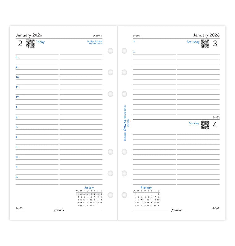 Organize your day in detail with this Personal day per page diary. Saturday and Sunday are combined on one page.