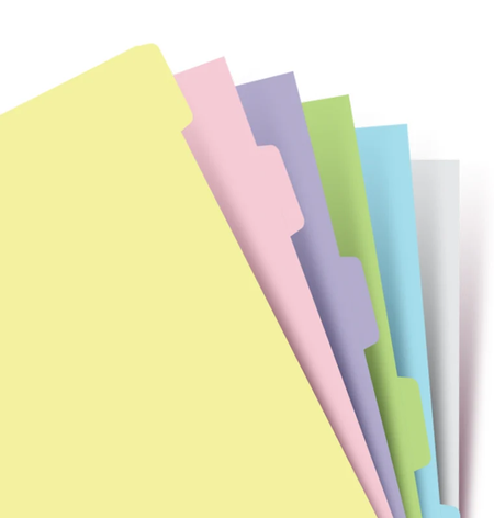 Keep your Filofax A5 organizer or Clipbook beautifully organized with this Six Tab Blank Pastel Index.