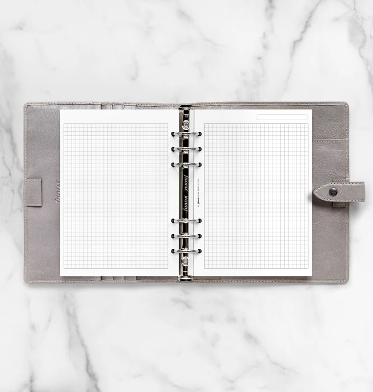 White quadrille notepaper refill for your Filofax A5 organizer or A5 Clipbook.