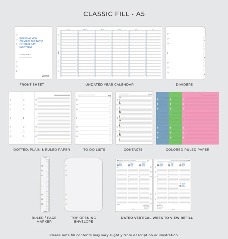 Our sophisticated Finsbury Organizers in A5 size are beautifully crafted in our unique soft rambler leather with a rich two-tone finish. Featuring a strap closure, a pen loop and card pockets. Includes a Classic week on two pages diary.