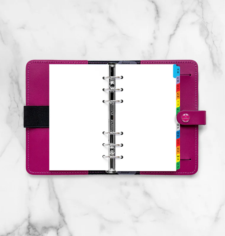 Keep track of your contacts with this multi-colored A-Z index for your Filofax personal organizer or personal Clipbook.