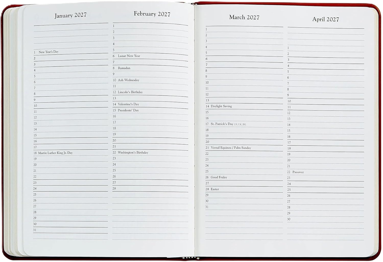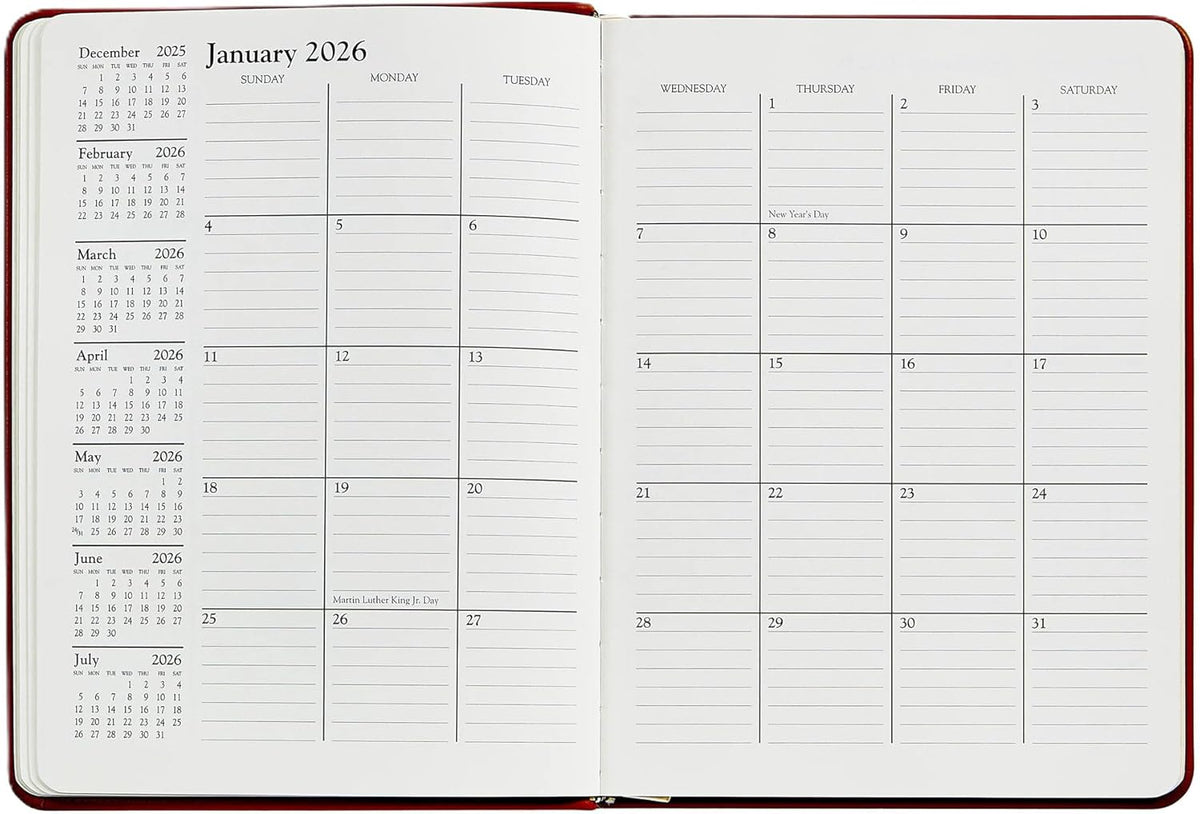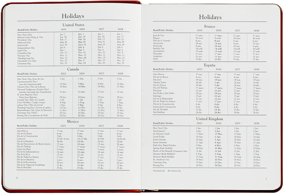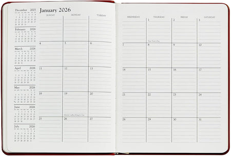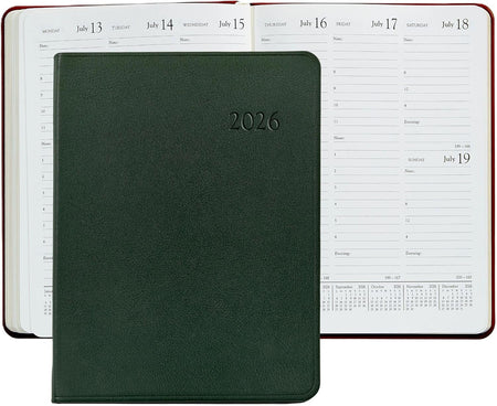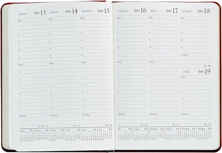 The standard by which all desk diaries are measured today. Our week-at-a-view desk diary has a vertical format designed with such economy that our trim size offers more writing space than most larger, more cumbersome diaries. This is a pure appointment book designed to organize your day, week, month, and year.