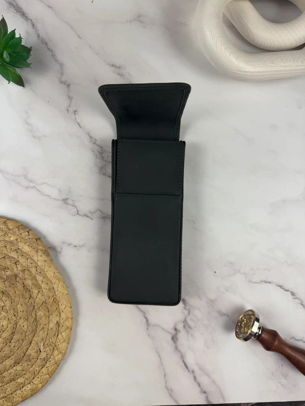 Immerse yourself in the elegance of the Girologio 3 Pen Magnetic Leather Pen Case, featuring an innovative magnetic closure mechanism paired with a discreet fold-down flap for swift pen retrieval. Plush lining and protective dividers ensure your pens stay pristine. Designed for up to two pens, this case combines functionality with sophistication.