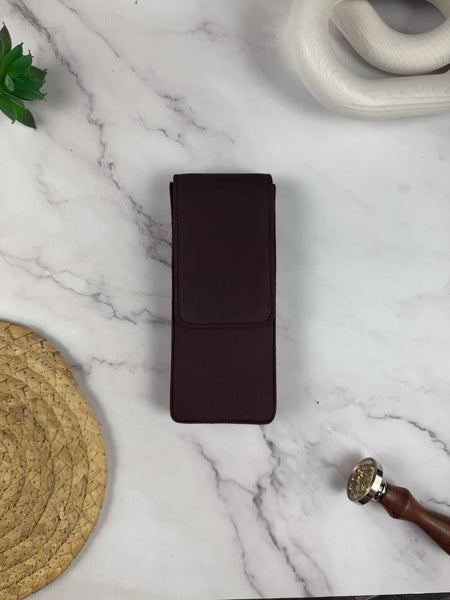 Immerse yourself in the elegance of the Girologio 3 Pen Magnetic Leather Pen Case, featuring an innovative magnetic closure mechanism paired with a discreet fold-down flap for swift pen retrieval. Plush lining and protective dividers ensure your pens stay pristine. Designed for up to two pens, this case combines functionality with sophistication.