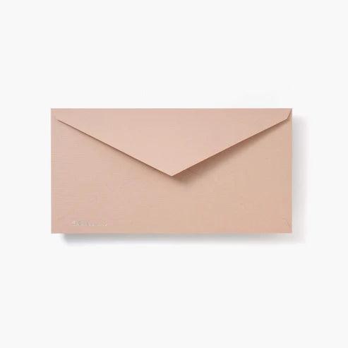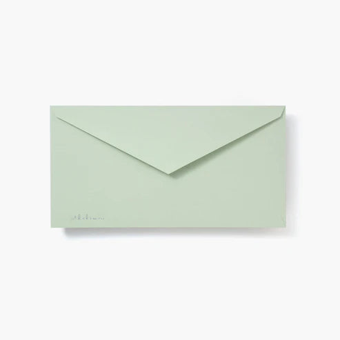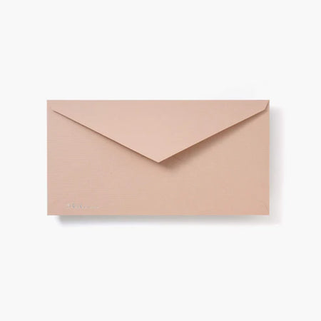 Designed to blend practicality with elegance, these envelopes perfectly accommodate our single note and letter paper sheets. Their slim profile is ideal for B5 paper folded into thirds. Made from Japanese paper that is compatible with fountain pens, you can write on the envelope directly. Featuring a timeless design, they suit formal correspondence—choose a color to match your specific occasion or sentiment.