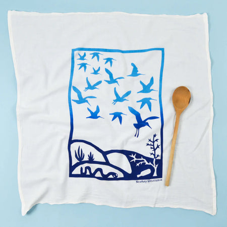 Just as we admire the flocks of birds flying south for the winter to escape the cold, so do we respect the humans who uproot themselves from their homeland in search of a better life. Migration has always been a key for survival, whether it's birds flying to warmer climates, or humans seeking a safer life. This cotton flour sack towel honors the migration of the entire animal kingdom. Enjoy it for its silhouetted images of birds and for its deeper message!