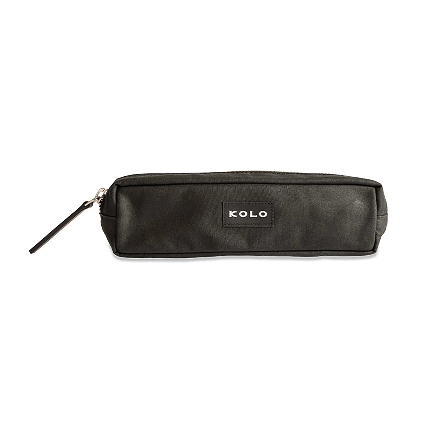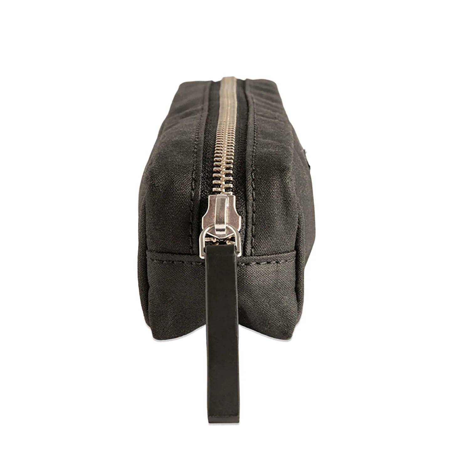 Organic cotton canvas pouch for creative tools. Weatherproof wax coating: durable and stain-resistant. Two-way, solid brass zipper with nickel matte finish. Store pens, pencils, brushes, and erasers for easy carry.