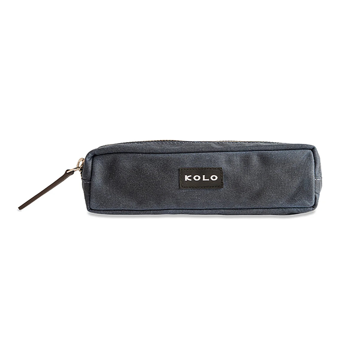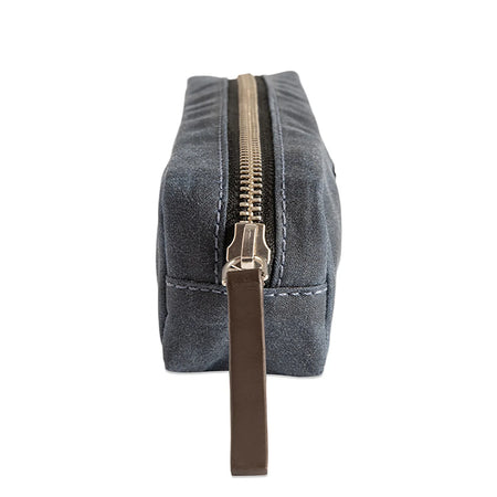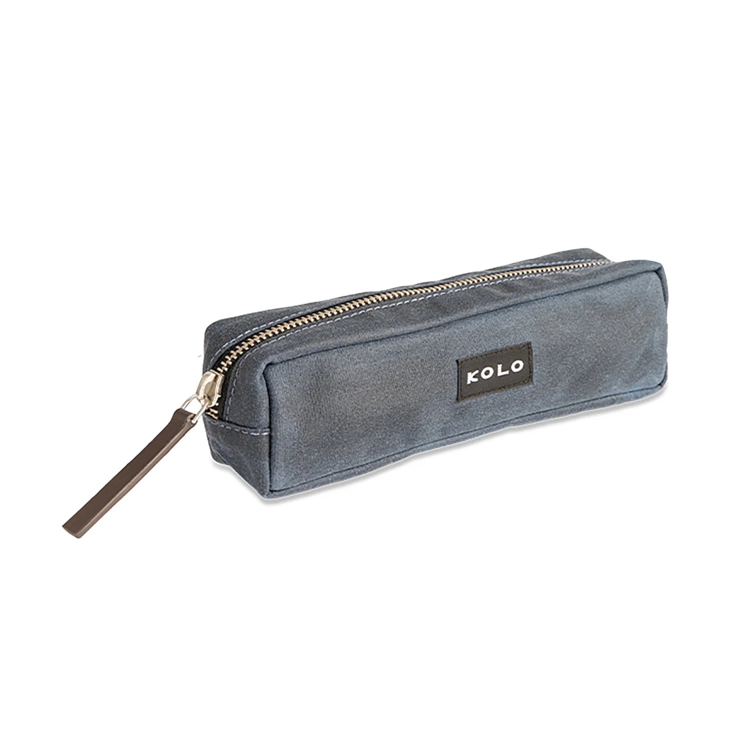 Organic cotton canvas pouch for creative tools. Weatherproof wax coating: durable and stain-resistant. Two-way, solid brass zipper with nickel matte finish. Store pens, pencils, brushes, and erasers for easy carry.