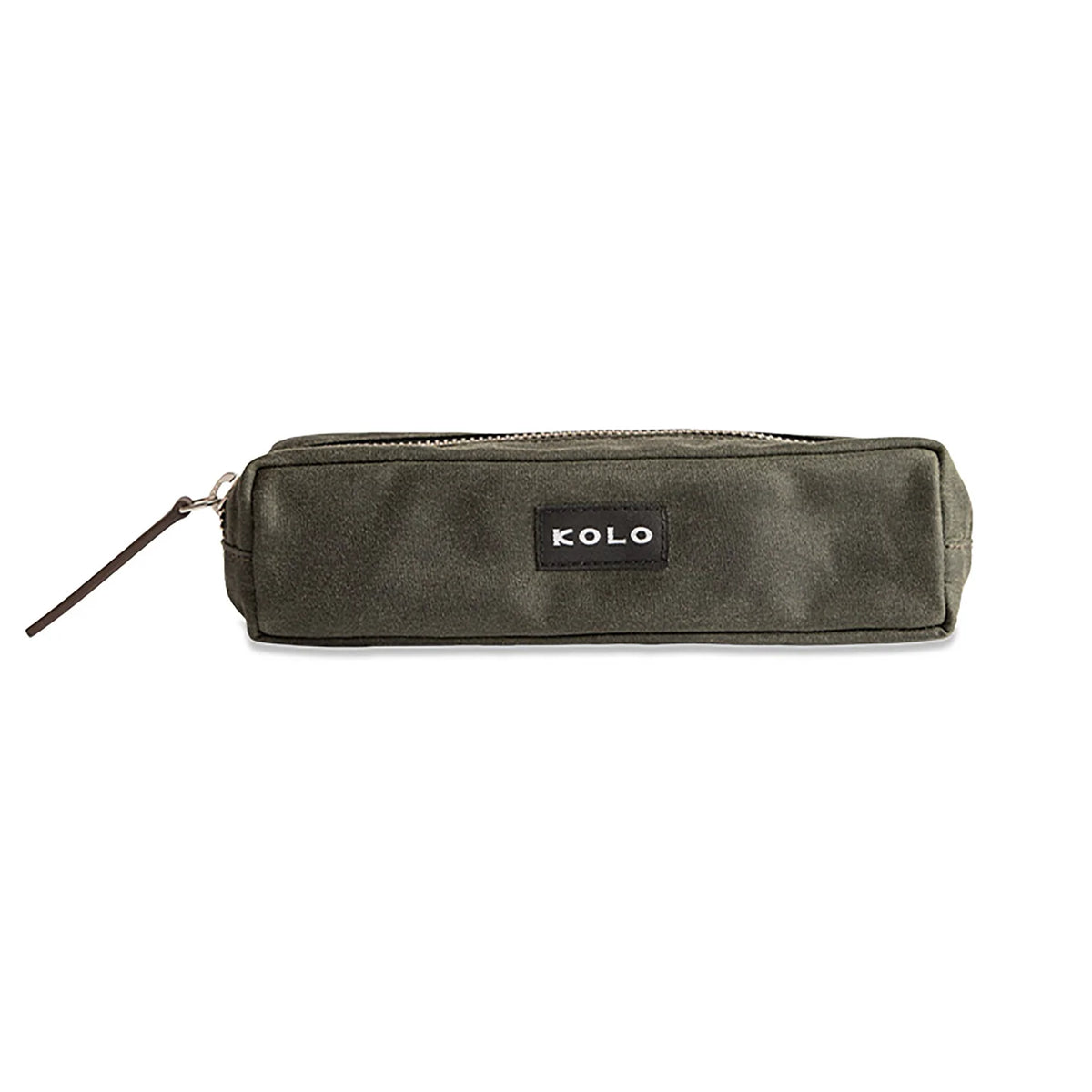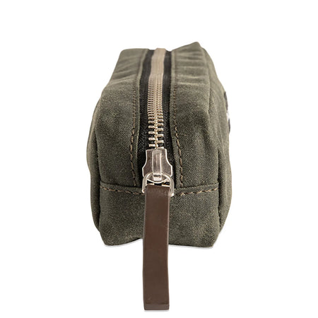 Organic cotton canvas pouch for creative tools. Weatherproof wax coating: durable and stain-resistant. Two-way, solid brass zipper with nickel matte finish. Store pens, pencils, brushes, and erasers for easy carry.