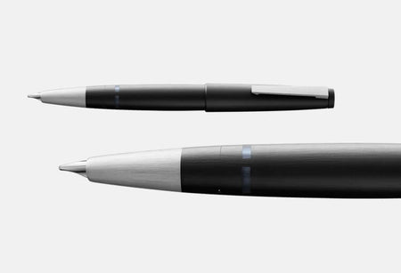 The Lamy 2000 is one of the most famous fountain pens in the world. It is made of a combination of black fiberglass and brushed resin. This pen writes with a 14kt gold nib, which has a slightly squared tip to it. This gives it a very smooth and luxurious line. Most people find the extra fine or fine to work for them due to how broad this pen is. The Lamy 2000 fills through a piston mechanism. This means it can only be filled by bottled ink. To fill the pen simply dip the front section into an ink bottle and twist the back of the pen all the way up and back down.