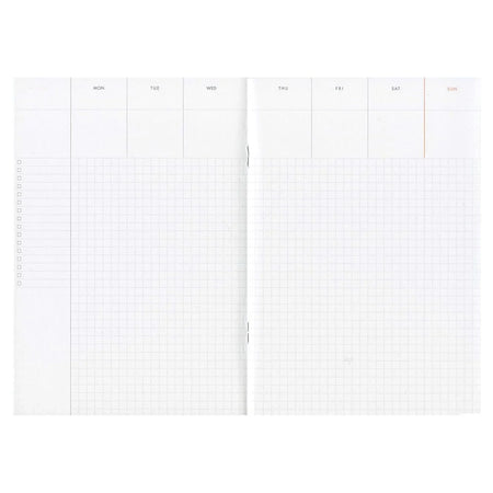 The FreeField Vertical Notebook helps you overlook the weekly schedule at the top of the page and detail the plan on the 5mm-grid-ruled memo area.