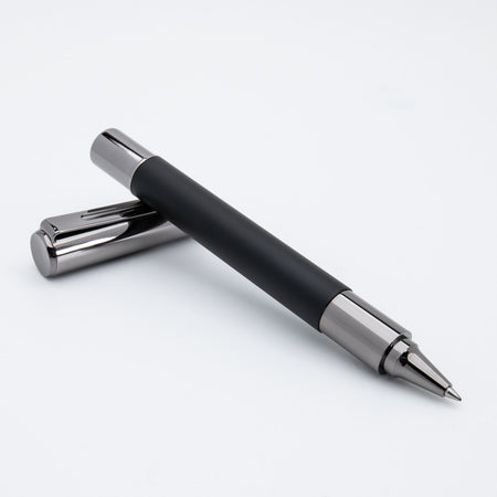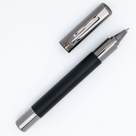 The Monteverde Ritma Rollerball combines minimalist 1960s-inspired design with durable steel and anodized aluminum construction. Its matte-finished aluminum barrel offers a smooth, muted color accented by polished gunmetal. Featuring a secure magnetic cap and posting system, this pen balances weight and style effortlessly. The rollerball refill ensures smooth writing, while the ergonomic twist mechanism reveals the tip. Ideal for those who appreciate clean lines and refined craftsmanship in a premium pen.
