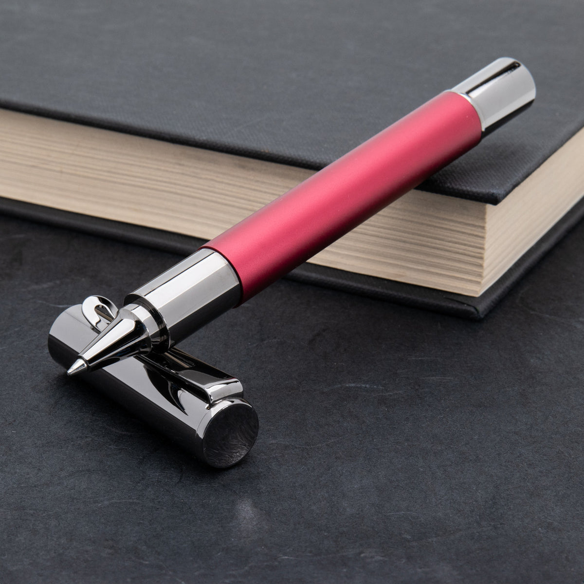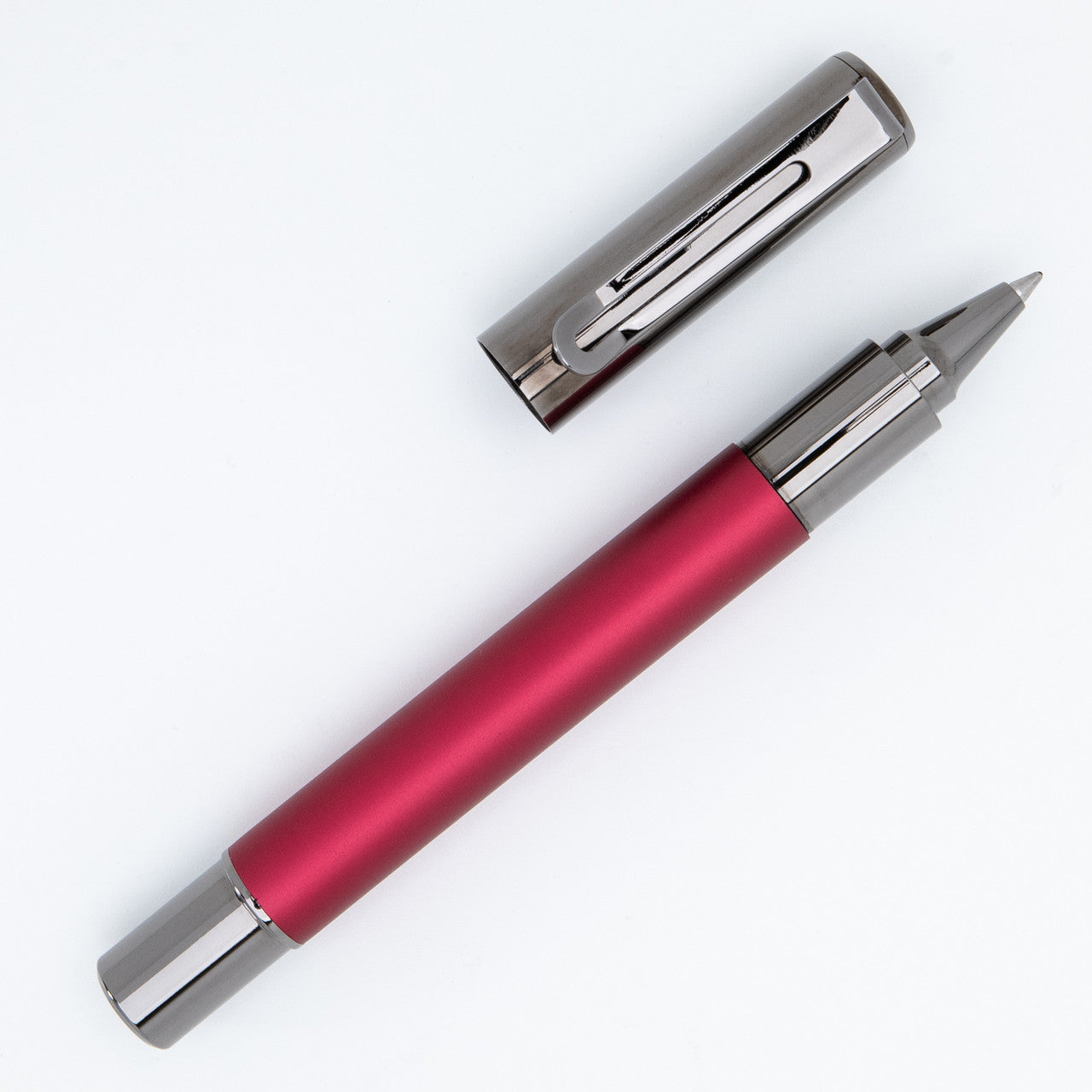 The Monteverde Ritma Rollerball combines minimalist 1960s design with modern materials. Crafted from anodized aluminum and steel, it offers a balanced, heavyweight feel with a sleek matte finish and polished gunmetal accents. The magnetic cap ensures secure, easy opening and closing, while the twist mechanism reveals the smooth rollerball tip. Available in vibrant metallic colors, including anodized red, it blends style and functionality perfectly for those who appreciate refined writing tools.