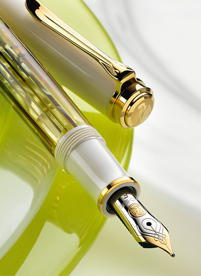 The Souverän M400 Tortoiseshell-White piston fountain pen has a 14-carat/585 gold nib with rhodium decor. The series also offers a rollerball, a ballpoint pen and a mechanical pencil with push-button mechanism.