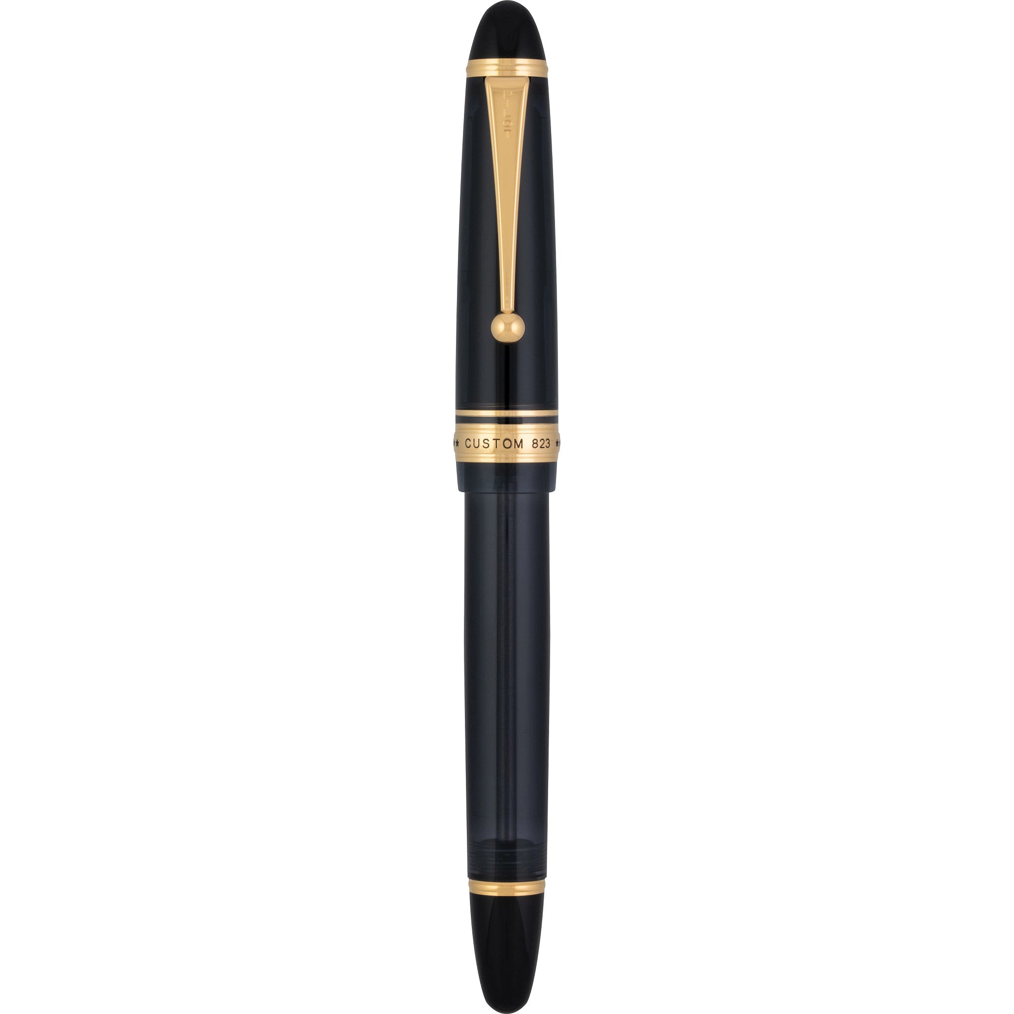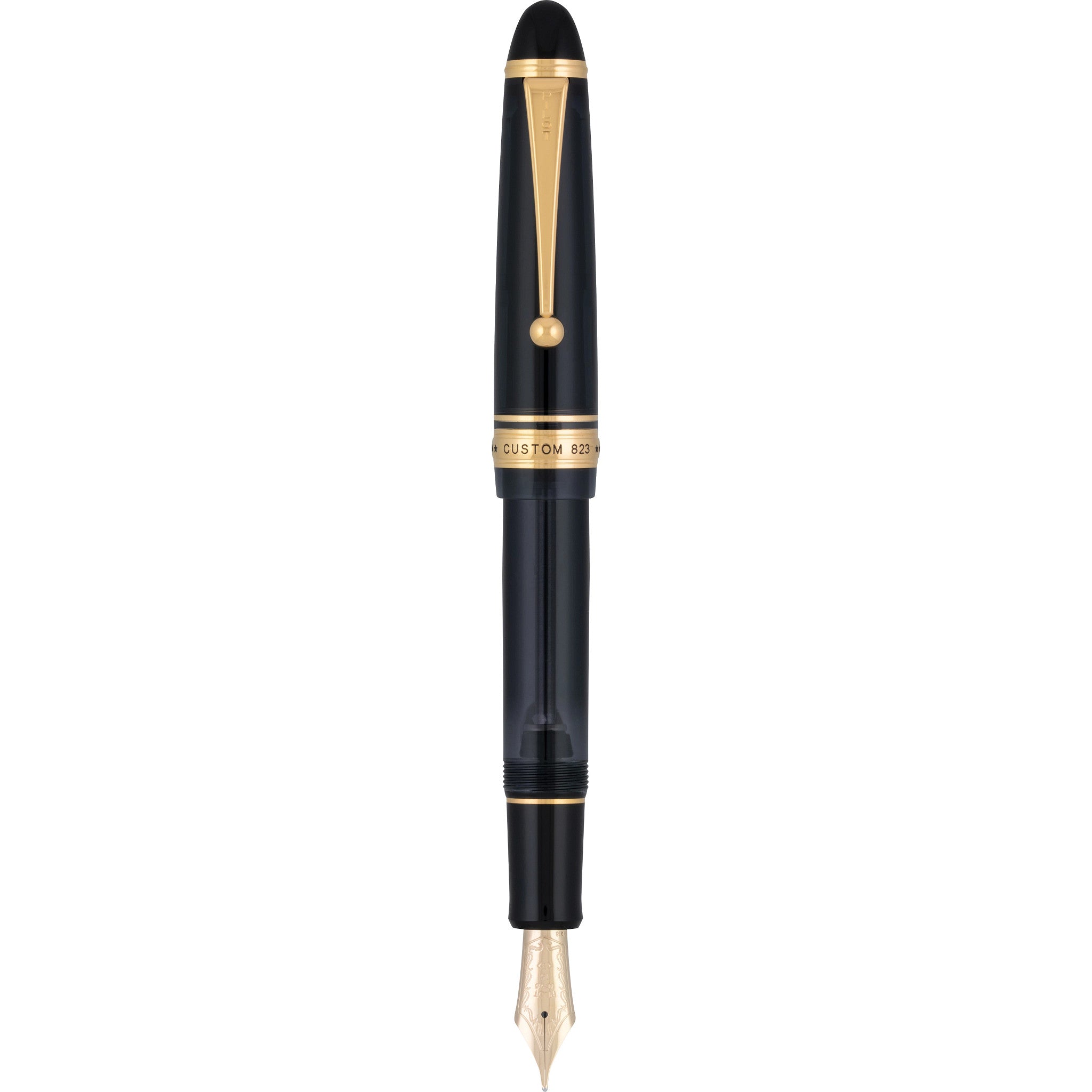 The Pilot Custom 823 fountain pen is an iconic choice that exudes timeless elegance. Its demonstrator-style design is available in three captivating options: a smoky grey barrel, a captivating amber barrel, or a NEW clear barrel, all adorned with exquisite gold accents that radiate an aura of refined sophistication. This exceptional pen features a 14 karat gold #15 nib, adding to its luxurious appeal.