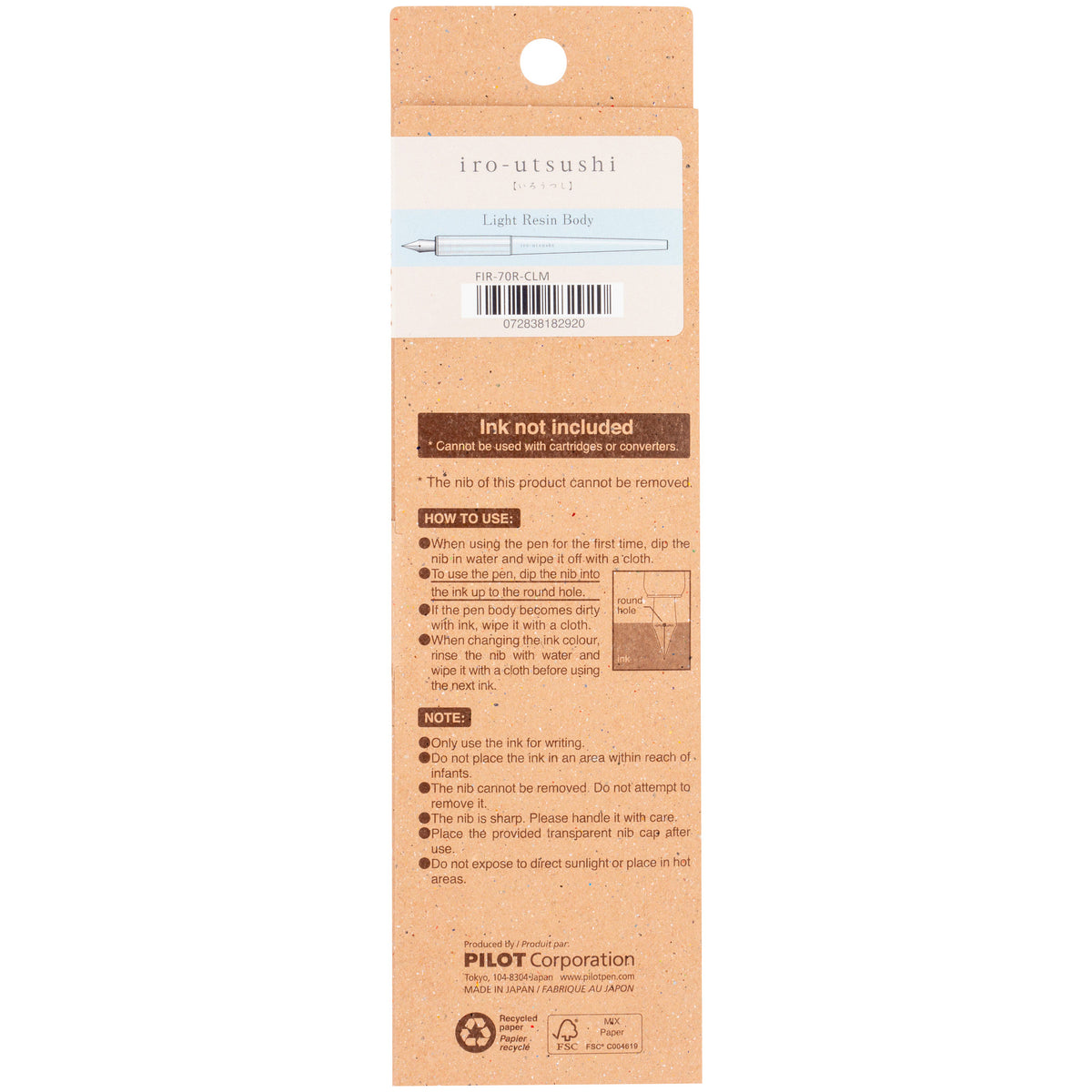 This dip pen is comfortable in the hand and easy to clean. The name "Iro-Utsushi" translates to "color transfer" in Japanese. To change colors simply run under the faucet or dip into a glass of water and the ink will come right off! Great for artists and ink enthusiasts who want to switch between colors with ease. With one dip you'll be able to write more than you'd expect. Available in Fine and Medium nib sizes.