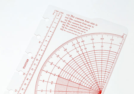 The Ruler Pad is a scale ruler, protractor, character size reference, and line width chart all-in-one. The upper right corner has a protrusion that is designed to be an index tab so you can quickly access the page you need even after closing the ring leather binder. The keyhole ring design makes it easy to remove and reposition wherever you like. Enjoy a wide variety of scales and line width guides to assist your creative work.