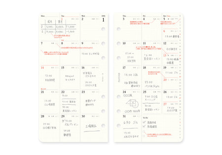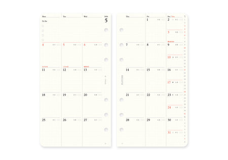 The dated Monthly Schedule Refill is meticulously designed to maximize the use of limited space and to provide a dated planner functionality to your PLOTTER Leather Binder Bible Size. It includes a monthly schedule at a glance, while the margin provides space to note down tasks or to-do lists.