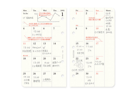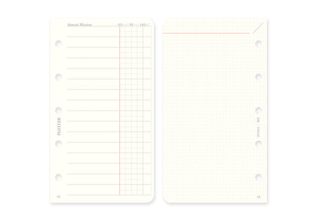 The dated Monthly Schedule Refills are meticulously designed to maximize the use of limited space and to provide a dated planner functionality to your PLOTTER Leather Binder Mini 5 Size. It includes a monthly schedule at a glance, while the margin provides space to note down tasks or to-do lists.