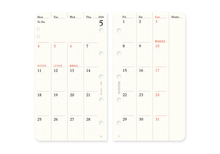 Monthly Schedule Refill 2026 PLT0001 (Mini 5 Size)