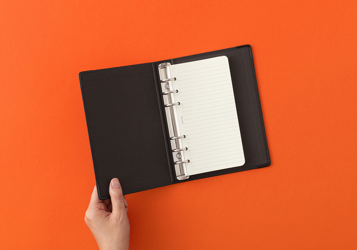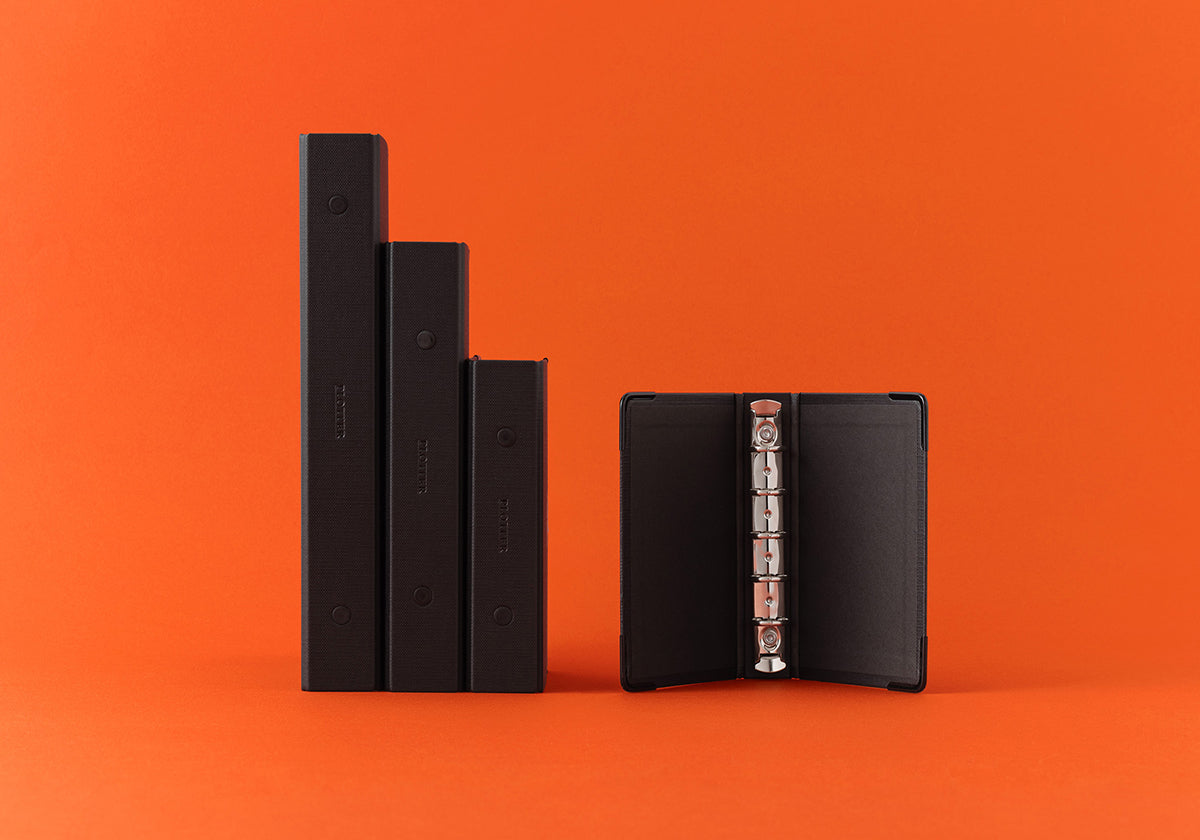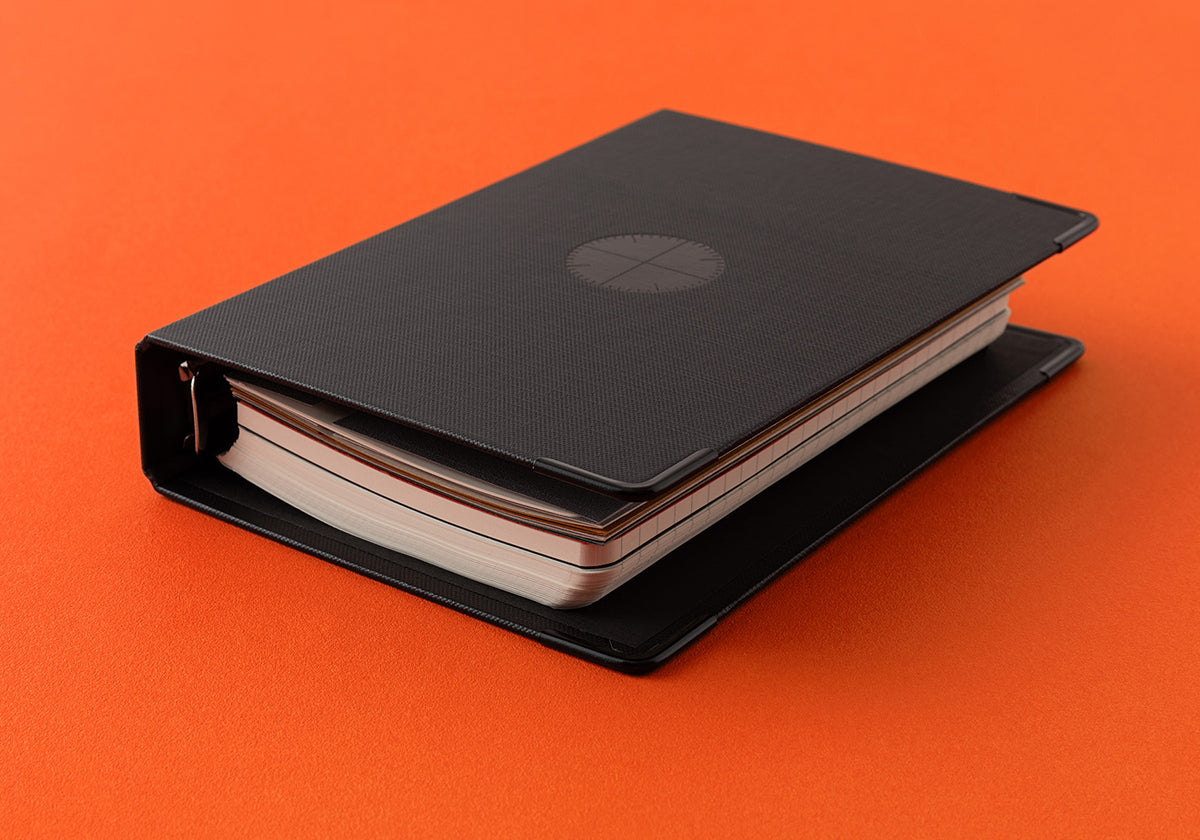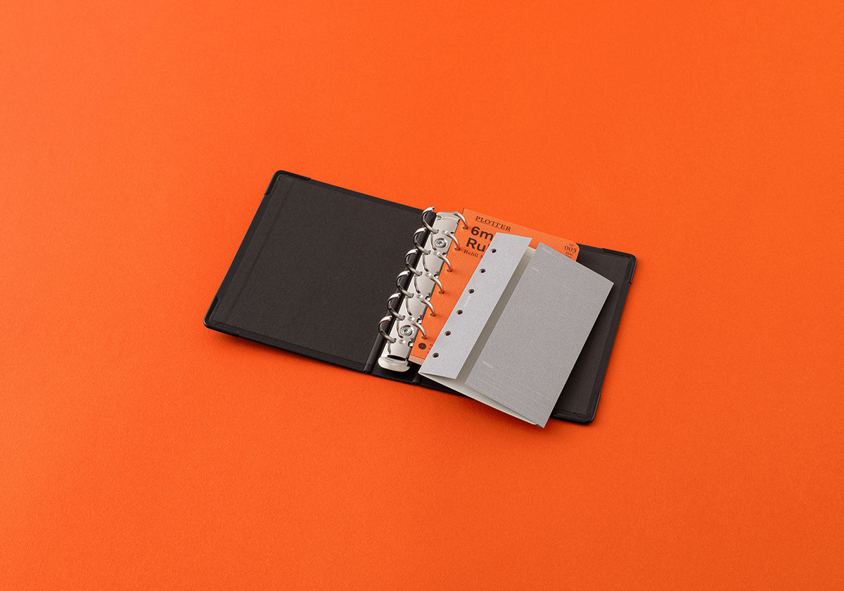 The cover of the Refill Storage is made with durable and stain-resistant cross paper, reinforced with black corner hardware. The cover also features a foil-stamped PLOTTER Original circle mark. You can maximize the functionality of a Refill Storage by organizing and categorizing archived pages with the Project Manager Accessory Refills.