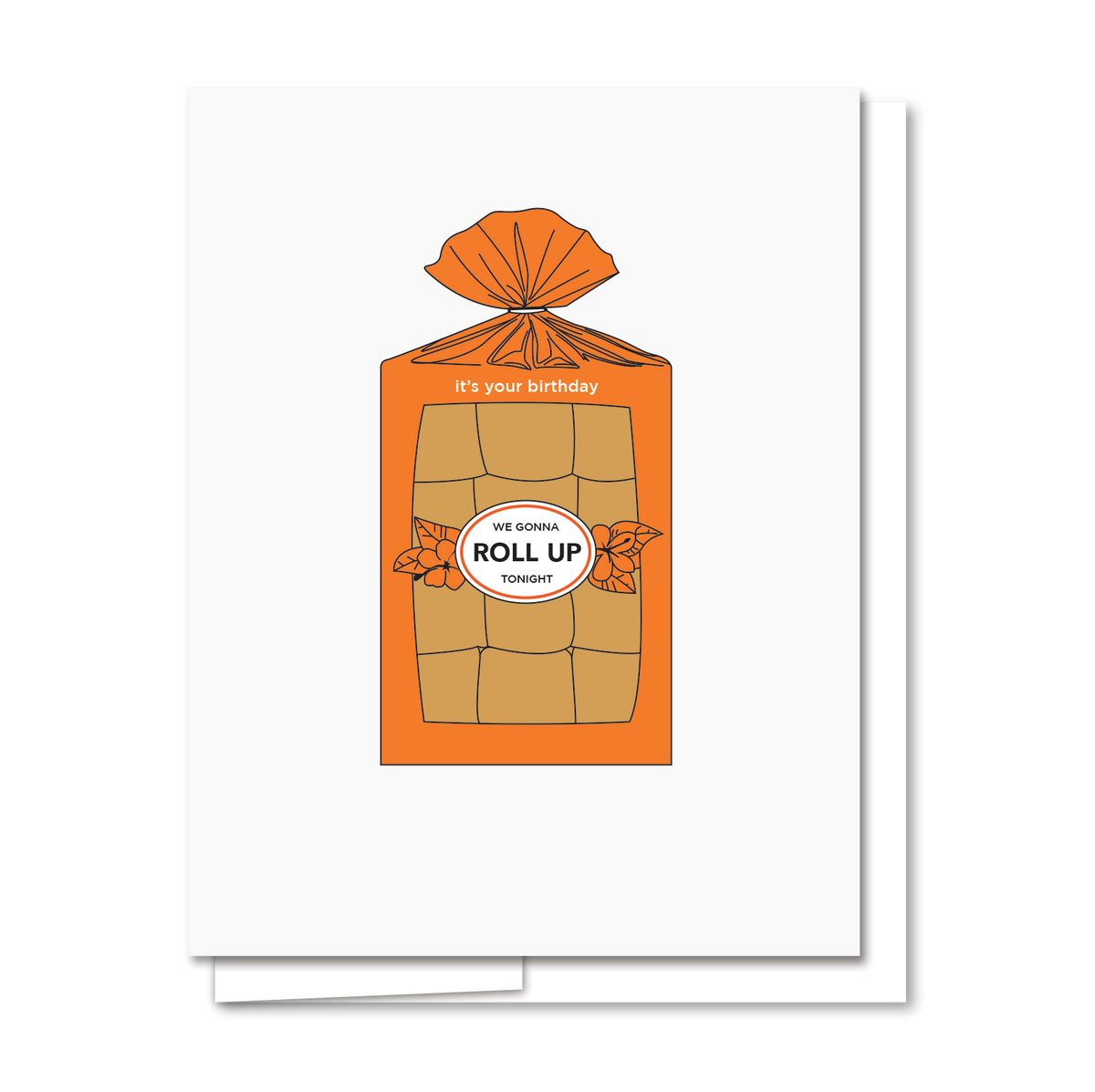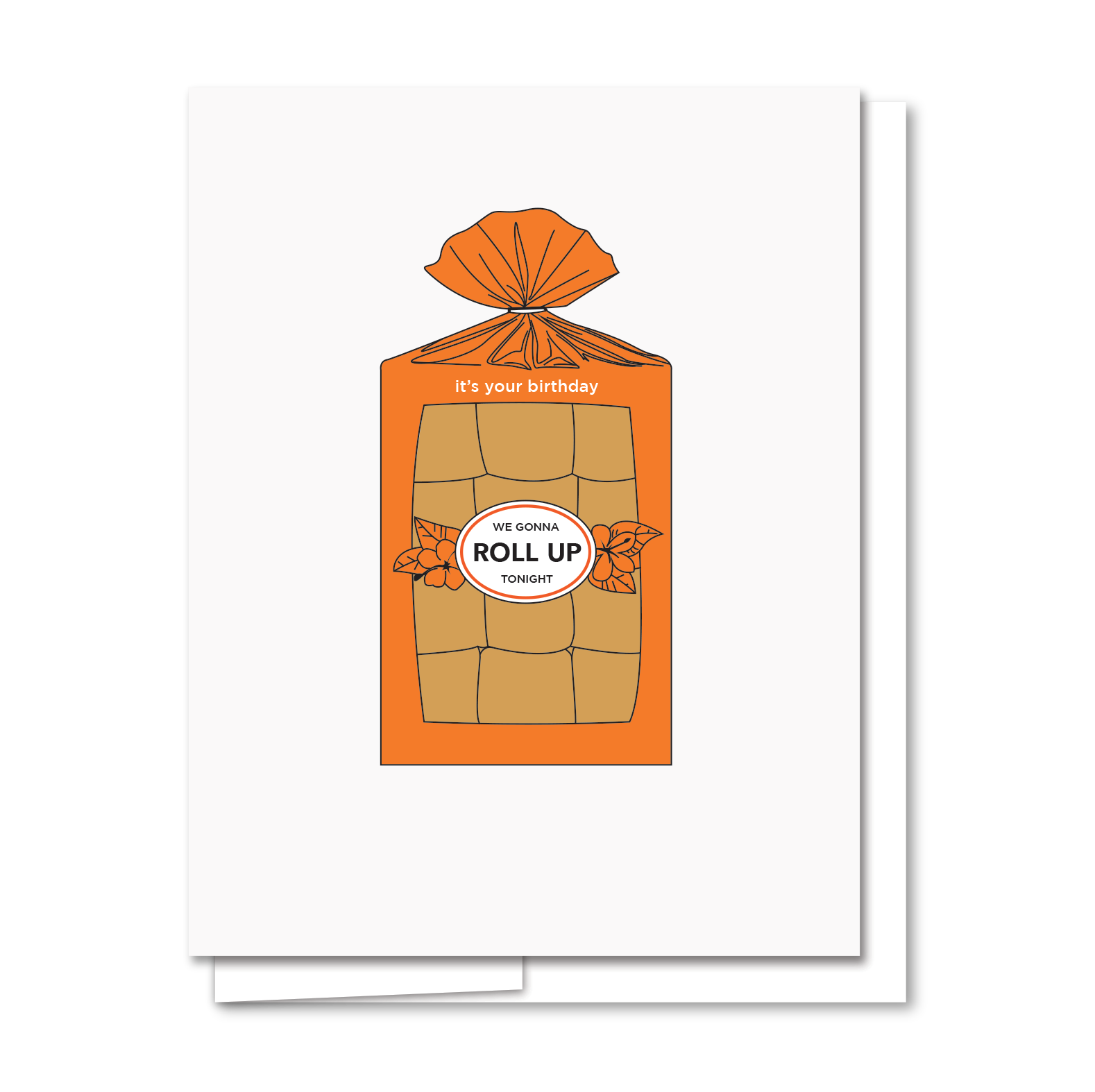 It’s your birthday, we gonna roll up tonight! Sweet Hawaiian Roll bread themed card by Quick Brown Fox Letterpress.