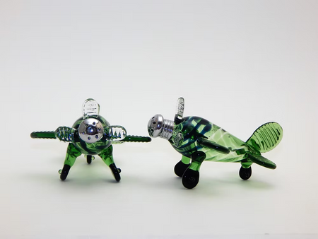 Salt & Pepper Shakers - Green Airplane