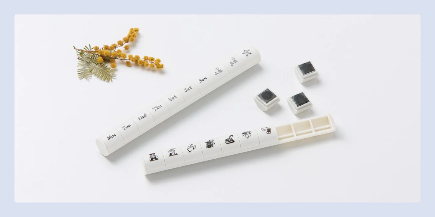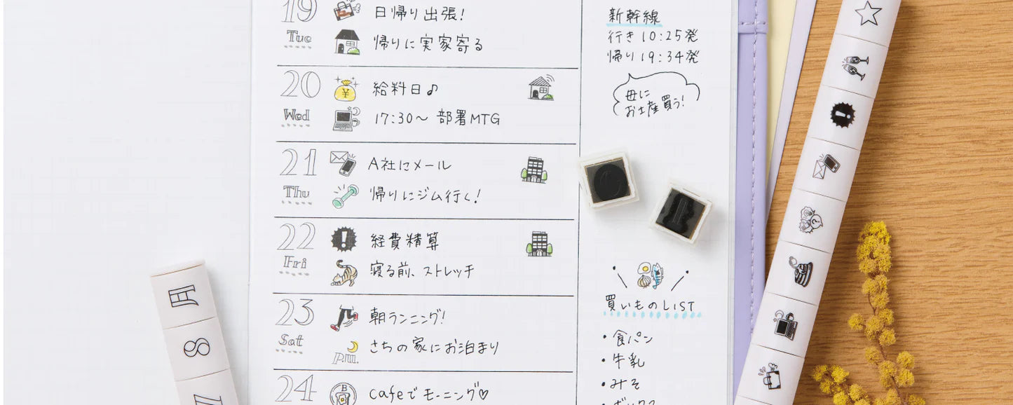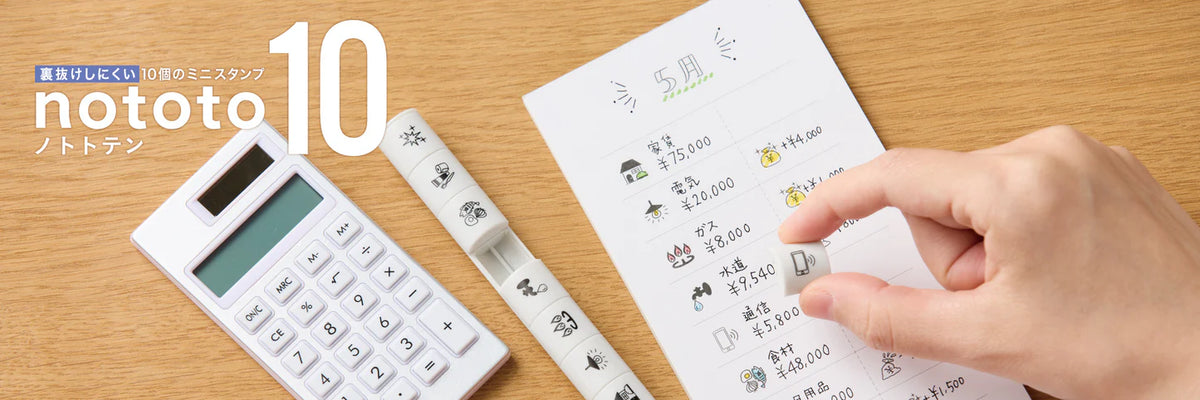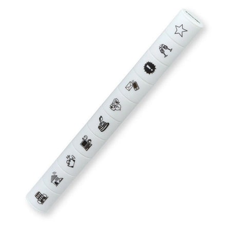 nototo 10 stamp is a stick-shaped stamp that consists of 10 mini stamps. The stick shape fits well in a pen case. and you can easily enjoy your journaling time at home or on the go.