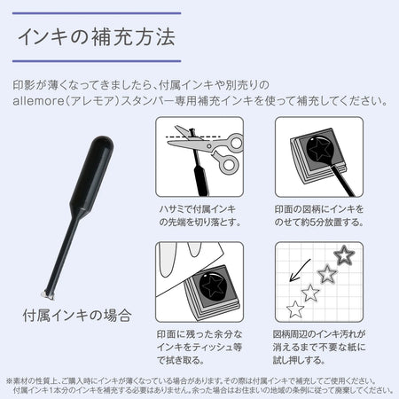 *Due to the nature of the material, the ink may be thin at the time of purchase. In that case, please replenish with the included ink before using it. There is no need to refill one bottle of the included ink. If there is any excess, please dispose of it accordingly.
