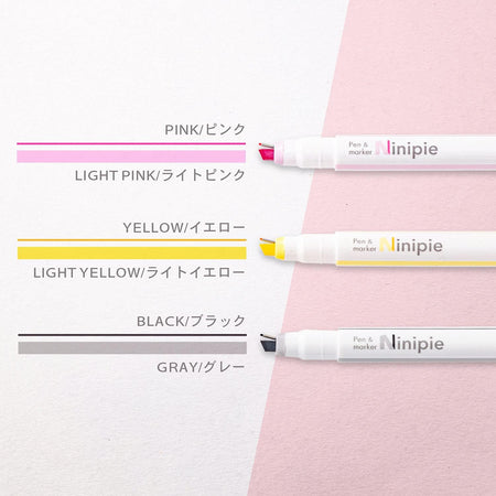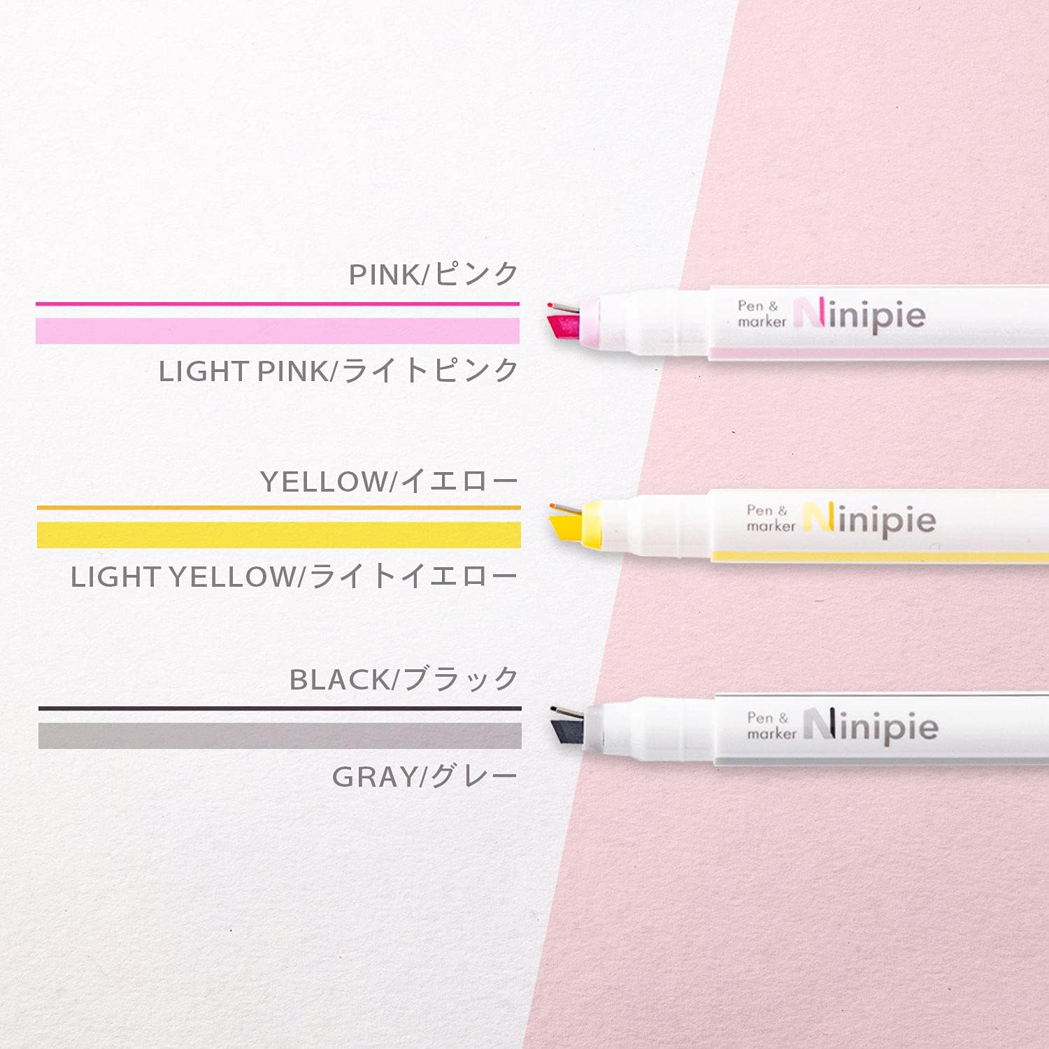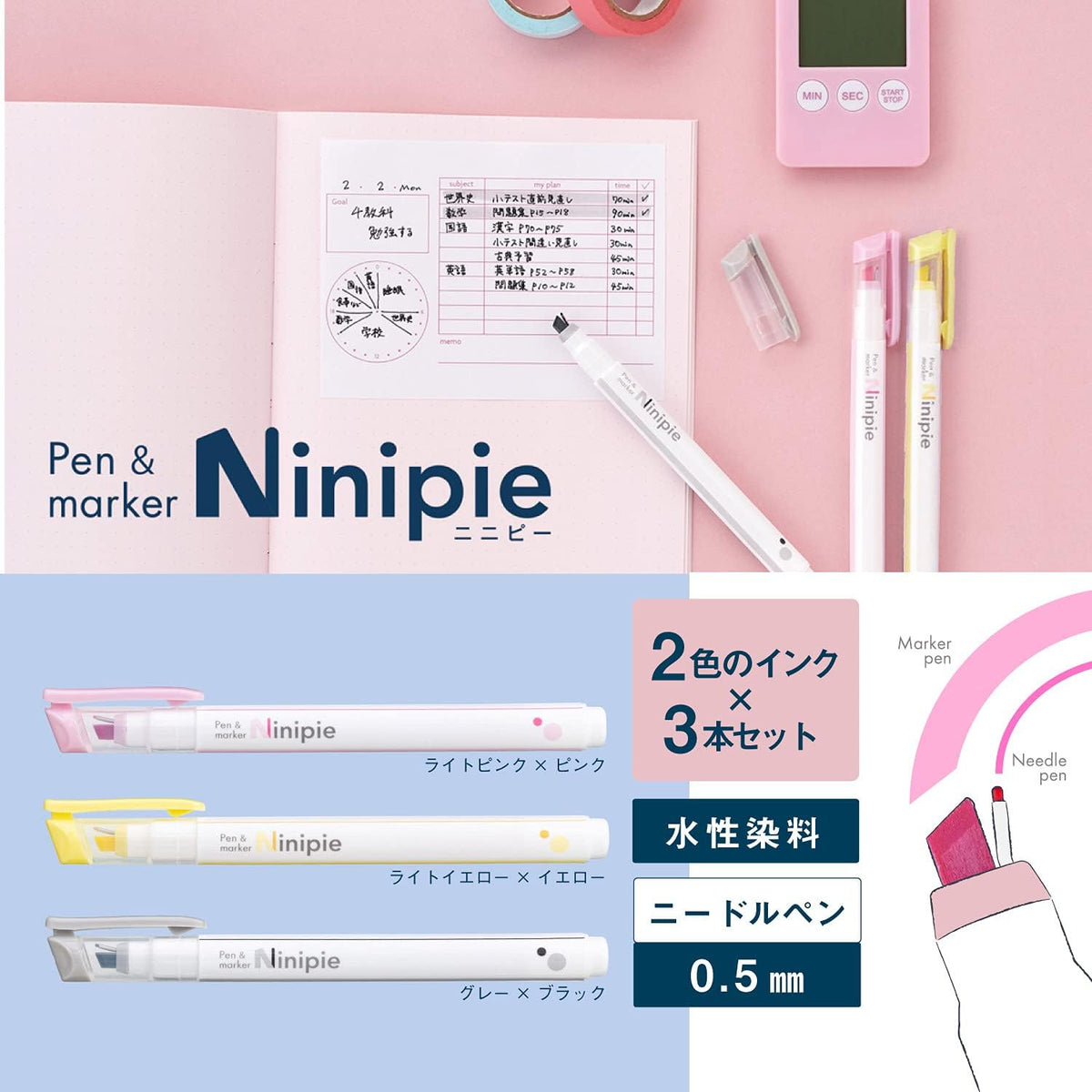 Sun-Star Ninipie Pen and Marker (Set of 3) - Gray/Yellow/Pink