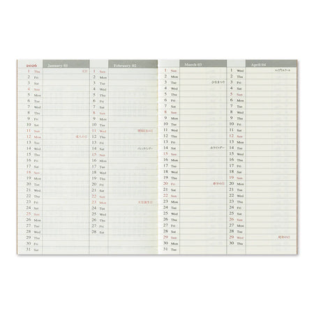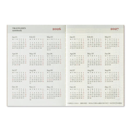 TRAVELER'S Notebook Passport Size Refill - 2026 Weekly
