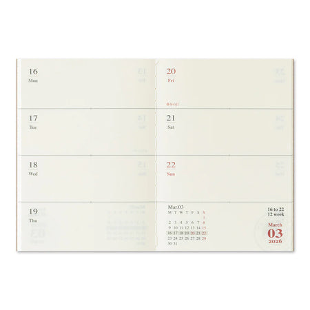 This is 2026 Weekly Diary Refill for TRAVELER'S notebook Passport Size. There is ample space for each day of the week to jot down notes, appointments, or other tasks. It is also suitable for use as a mini diary where you can write down things that happen daily.