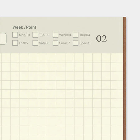 This refill is a diary version where a each page is worth a single day. When you complete this refill, you will have 2 months worth of your memories inscribed. Please use this to record the new things you encounter and discover in your daily life. The page is grid ruled, so it makes it easy to write, draw, and paste things that you collect. You can even use this as a list where you can write about the books you read or the shops you visited. The MD paper is used for this notebook so the feeling when writing is very pleasurable.